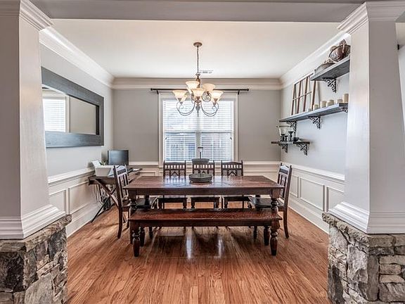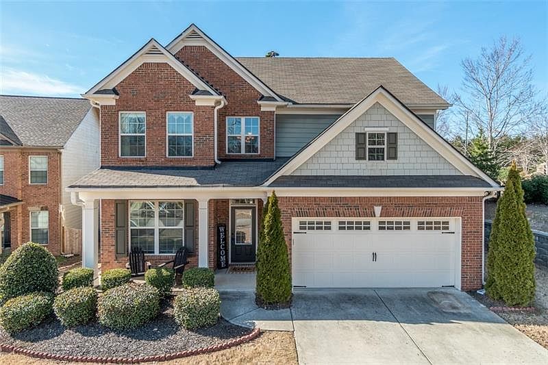 Come see this charming 4 bed 2.5 bath cul-de-sac/corner lot home in Buford! Enter the 2-story foyer to see beautiful stacked stone pillars throughout the home, complemented by clean carpet and gleaming hardwoods. The large dining room is detailed with beautiful wainscoting. Follow the hall to the bright kitchen, featuring excess storage, granite counters, freshly painted cabinets, and a walk in pantry. The kitchen opens to the breakfast area and family room, all of which are illuminated by abundant natural lighting.