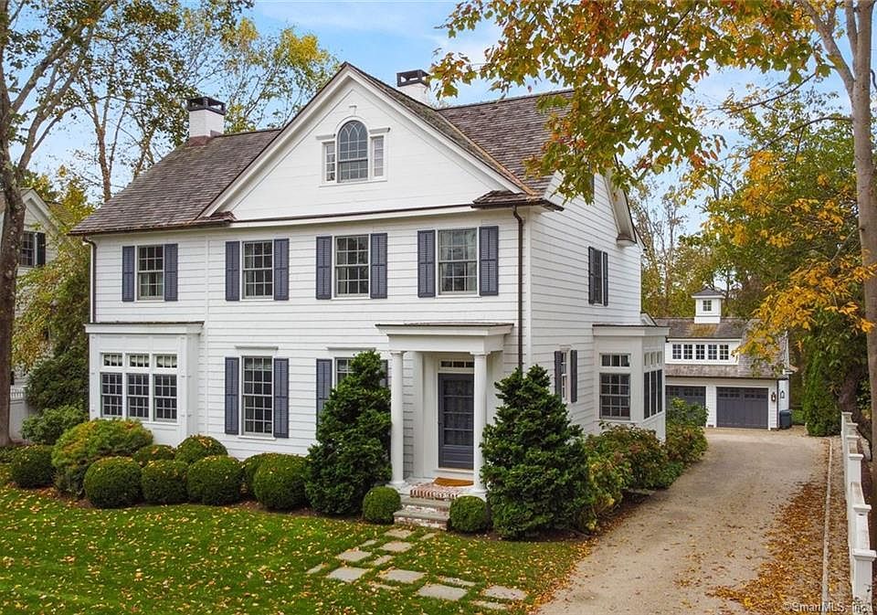 Stunning, inviting home steps from Southport Beach and Long Island Sound offers gracious spaces for living, dining, home offices, home schooling and entertaining. Meticulously renovated 5 BR, 3.5 BA home opens to foyer room w/welcoming fireplace, library w/ built-in shelving and fireplace, gourmet kitchen w/ built-in windowed dining alcove. Main hall leads to dining room, office/playroom, butler’s pantry w/ beverage drawers. Covered back porch leads into large mudroom w/ direct access to kitchen and ½ bath. Luxurious 2nd floor master suite has custom his/her wardrobes, spa bathroom w/ shower and soaking tub. 2 additional BRs, full bath, convenient laundry room also on this floor. Fully finished 3rd floor features 4th/5th BRs, 3rd full bath and multipurpose room perfect as media area, home school site or private lounge. 4-car heated garage cottage w/ built-in storage completed Oct 2020. Second floor suite designed as family rec room, home office, workout area, home school site or full guest house w/ kitchenette, full bath, built-in daybeds, and Clearlight infrared sauna. Custom cupola is the crowning touch flooding more light into this charming space Professionally landscaped grounds w/ stone fencing, bluestone back patio and long pebble driveway w/ private back of house parking, turnaround area. This Southport Village home offers an elegant, low maintenance lifestyle w/ city conveniences of trains, restaurants, shopping, boating and beaches all w/in easy walking distance