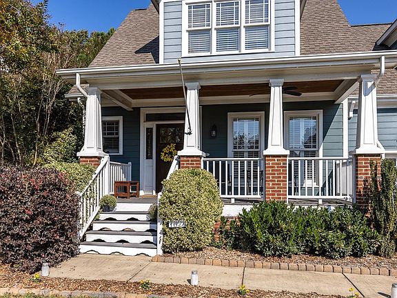 This stylish Craftsman is sure to please! This gorgeous home has soaring cathedral ceilings with a breathtaking 19' stone fireplace, as well as warm, cozy wood tones and beautiful hardwoods you'd expect in a quality Craftsman home. Extra custom details include coffered ceilings, built in corner cupboard in breakfast room, and plantation shutters. Primary bedroom on the main floor plus three additional bedrooms upstairs. One is large enough to be a bonus room. The walk-in attic has loads of storage. It's tucked away in a quiet neighborhood convenient to 85, 540 and 440 for an easy commute. The private spacious backyard is freshly reseeded and fully fenced with easy-care vinyl. It's perfect for entertaining with an oversized deck, cement patio, and an additional paver patio great for bonfires. Be sure to visit the interactive virtual tour to experience the full effect of this amazing home!