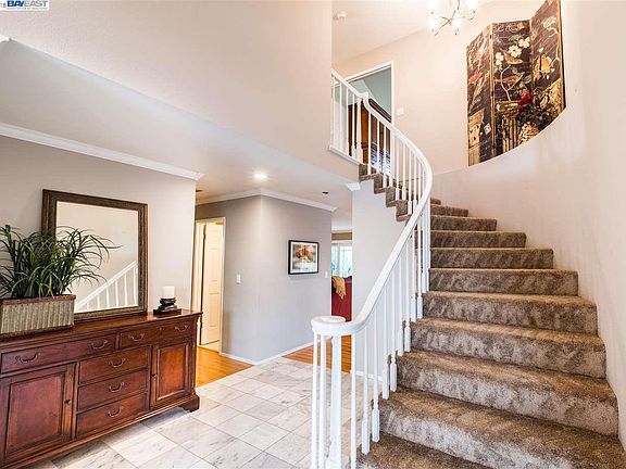 Just Beautiful in the very popular Vintage Hills neighborhood! Superb location within walking distance to Vintage Hills Park, Elementary School, & Community Pool. Situated on a large, premium lot backing to permanent open space. Terrific floor plan boasts loads of upgrades and features Formal Entry with sweeping staircase. Updated Kitchen with center island with bar seating, new granite counters and stainless steel appliances, maple cabinetry, and breakfast nook overlooking the backyard. Adjacent Family Room with fireplace & oversized slider to Backyard. Formal Living and Dining Room with fireplace and vaulted ceiling, main level Bedroom with custom sliding doors & full main level BA. Upstairs, spacious Master Bedroom Suite with hillside views & newly updated Master Bath with walk-in closet. 3 additional upstairs Bedrooms share full Hallway Bath. New carpet throughout, newer interior/exterior paint, newer roof, crown molding, hardwood floors, ceiling fans, vaulted ceilings, and main level Laundry Room. Private, entertainer's Backyard with pool, covered patio with bench seating, and plenty of room to play. Loads of storage space in 3 car garage. All this and top rated Pleasanton schools, proximity to Historic Downtown, Livermore Valley Wine Country, Silicon Valley and San Francisco.
