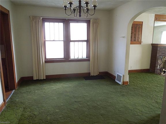 This three bedroom home features vinyl siding, front porch, entertainment size living room with a wood burning fireplace, charming arched doorways, a spacious dining room that will accommodate the family dinners, a kitchen with plenty of cabinets, counter space, refrigerator and stove, a charming breakfast nook for informal dining, two 1st floor bedrooms with hard wood flooring and one with a built-in desk, the second floor bedroom even has a walk-in closet that measures approx. 7x13 and there is plenty of room for storage in the attic. Outside is the 1 car detached garage with opener, additional parking in the carport and a covered patio. Owner is selling as is. Call for your private showing today!! LAs are related to seller.