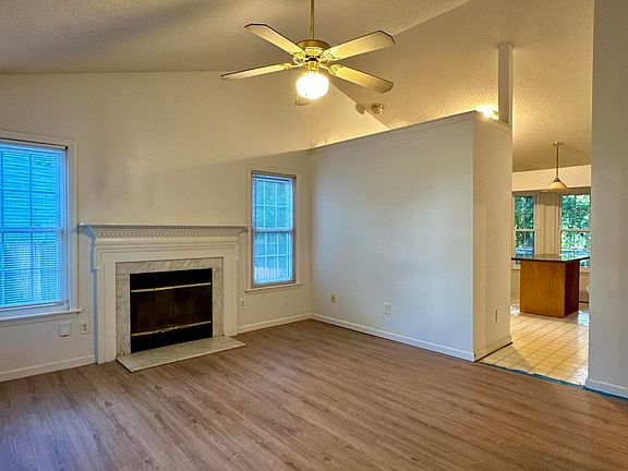 Vaulted ceilingsWooded backyardBright open layout