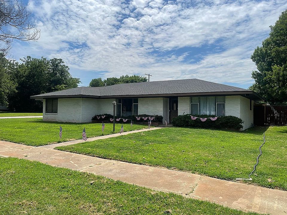 This spacious home is located on a corner lot close to Chickasha schools and USAO!! This home offers 3 bedroom, 2.5 bath with a large living room, formal dining room, large kitchen, office with separate entrance, and a beautiful backyard with an in-ground pool allowing plenty of space for entertaining. This home was recently updated with paint, flooring, fixtures and new master bathroom. The kitchen is full of beautiful flawless metal cabinets. Two of the very large bedrooms are master suites and the 3rd bedroom could be used as a den. New Roof in 2022!