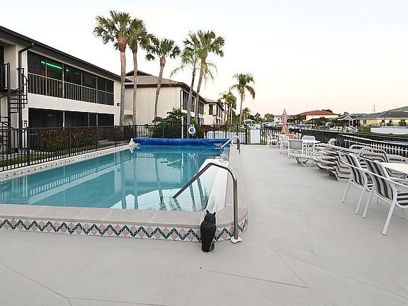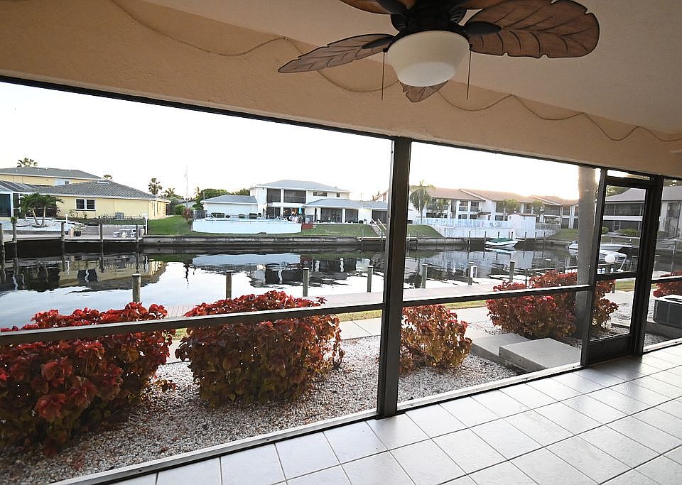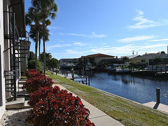 Fully furnished turn key, 2 bedroom, 2 bath, main floor, gulf access condo with extra large lanai, conveniently located near shopping, dining and more. Improvements include: kitchen remodel, reverse osmosis water treatment system, appliances, lanai screens and painting of screen metal 2014, carpet 2015, toilets and faucets 2016, water heater 2018, furnace and air 2020. The association does allow rental of the units, minimum rental time is 3 months, roofs was replaced in 2017, exterior painted 2019 and new boat docs 2016. Unit does come with seasonal renters. Owner is a licensed real estate agent in Minnesota and Iowa.