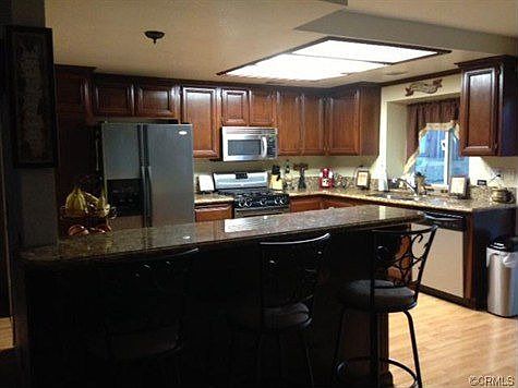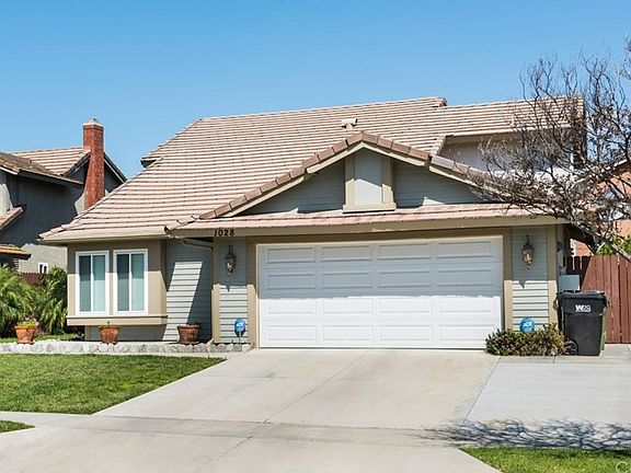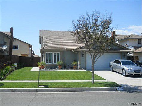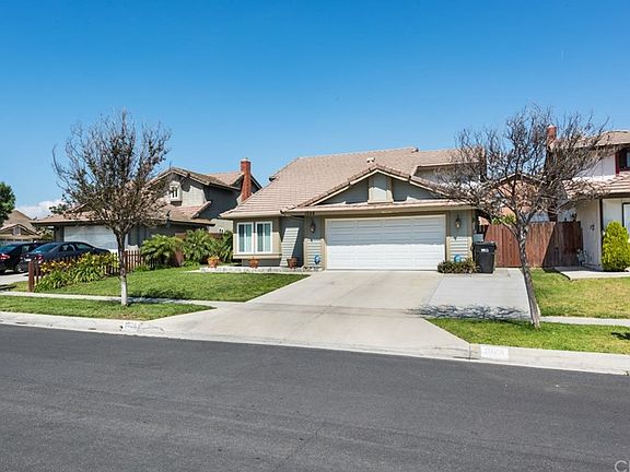 Amazing 4 bedroom home with great curb appeal located on quiet street and neighborhood. Professionally landscaped with palm trees-well manicured front and back lawn that features custom irrigation with drainage in sod and around concrete. As you enter the home you notice the valuted ceiling-contemporay colors with abundance of windows providing lots of sunshine. The interior of the home features vinyl windows throughout-wood laminate flooring downstairs featuring a open spacious and open living room to the formal dining area. The cozy family room with fireplace and ceiling fan opens up to the remodeled kitchen featuring granite counter tops-breakfast counter bar-abundance of cabinet space and pantry-stainless steel appliances and a garden window looking into backyard. The sliding glass door leads you to a landscaped backyard with palm trees-green lawn-fenced for privacy all around-stone fence planter-canopy for sitting area for entertaining and family fun. Downstairs you find a bedroom and full bathroom with shower and sink granite counter. Under the staircase you have additional storage room. Upstairs you will find 3 bedrooms all with new carpet flooring. The master bedroom has ceiling fan-walk-in closet-full bathroom with his and hers sinks. The other 2 bedrooms is a jack and jill with full bathroom. Both rooms have their own closet and ceiling fans. This home is a great home for family and children to build lasting family memories. I'ts a must see!!!