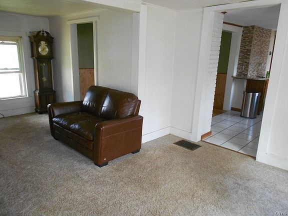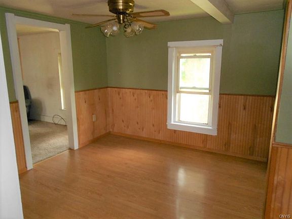 This spacious and larger then seems home on a great yard in Lakeland was enjoyed by this family for decades. House sits back off the road on a lot that goes back 300 feet. Large tree in back with tire swing (neighbors) is approx back boundary, according to Estate. Heated front porch (could be an office), large living room, formal dining room, 3 large bedrooms and kitchen with granite counter tops and ample storage. Full bath has a jetted tub. Original house has gas forced-air heat & full basement. Addition has crawlspace basement & electric heat *** Solvay Electric *** Located with Easy access to everything you desire *** A wonderful home waiting for you to enjoy! *** Square footage listed at ONGOV does not include addition.