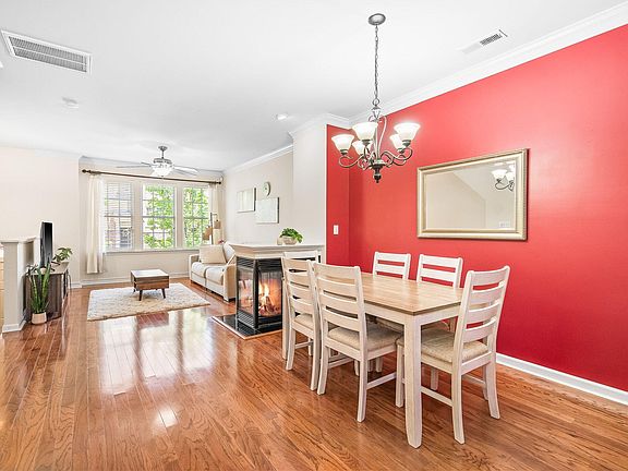 Welcome to this charming townhome in desirable West Cary! Walk up into a bright and open floor plan with a unique, three-sided central fireplace. Enter through the walk-up entryway or the one-car garage. All bedrooms have ensuite bathrooms: two upper-level and one lower-level. The primary bedroom boasts two walk-in closets in addition to a double vanity. Serene views of the pond from the porch are unbeatable for the convenient location. Situated under 15 minutes from RTP, and right around the corner from Cary Park Town Center. Don't forget the community pool and the brand new pickleball courts down the street at McCrimmon Park.