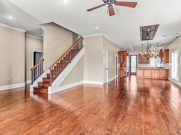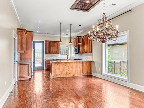 Luxurious 4 bedroom 3 bath custom home on the 11th tee box in Sage Meadows!Hand-scraped hardwood floors throughout main level, custom kitchen with granite counter-tops, huge walk-in pantry, built-in refrigerator/freezer, PLUS a gas cook-top for the gourmet chef. Dining room separates the living room/kitchen and features a jaw-dropping iron and crystal chandelier. Master suite features his and her vanities, over-sized Kohler steam shower, plus a closet with built-ins. Walk up the staircase to enjoy a HUGE game room/media room area plus a wet bar with sink, dishwasher, and ice maker. Theater area This custom theater by Sound Concepts has an 11 foot screen, Epson premium projector and 7.1 Klipsch surround sound plus plenty of room for theater seating and pool table! Also located upstairs are 2 spacious bedrooms with huge closets, laundry hook-ups, and a large bathroom! Out back is a landscaped with a wrought iron fence, covered patio area plus additional patio area perfect for entertaining.