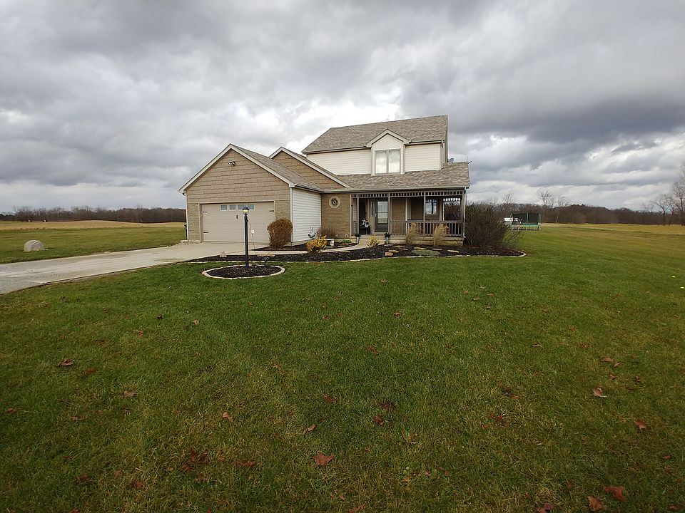 Offer accepted, sale pending, no longer taking back up offers. Testing the waters and listing our beautiful country home just outside of town for sale by owner. The home sits right on the edge of town, an easy 2 minute drive to the elementary school, 10 minutes to middle or high school, or 20 minutes to Fort Wayne. Very well maintained three-four bedroom (basement includes a small den with closet currently used as bedroom), 4 bath (2 full, 2 half) home on just under 3.5 acres. This home is practically new on the inside, everything has been gone through in the last 5 years. Interior features of the house include a large master bedroom with attached full bath and closet, as well as 2 additional bedrooms on the upper floor. The main floor includes a foyer, half bath, laundry area, kitchen with Corian counters, coffee bar with counters and stools, and stainless appliances, living room, dining room, and a bonus 3 season room. The recently finished basement includes a large open family room, dining/recreation area, 1/2 bath, utility room, storage closet, and a small bedroom/den. 2 propane fireplaces - main floor and basement. Updates include - solid core doors, door hardware, new exterior doors, porcelain tile in all bathrooms, 3 season room, foyer, and kitchen, exterior facing with low maintenance stone and cedar shake vinyl, landscaping updated. Large 24' Flagstone patio/firepit with walkway from 3 season room added in 2018. Wood laminate flooring in all living areas and bedrooms. Butcher block counter top with vessel sinks in master and main floor baths. All new kitchen appliances in December 16, new roof with a 25 year full transferable warranty in November 16. Washer and dryer new December 17. Heat pump and furnace new June 16. Attached oversized 2 car garage and a large storage shed with roll up overhead door. Home price of $275,000 includes 3.459 acres, which is the land from the west edge of the east field, to the west edge of the storage shed and back to just before the wooded area (see teal on map). Trails exist in the back area as well as 3 apple trees and a mulberry tree. Buyer will have the option to purchase 2 additional 3 acre lots to the west, 1 of which is currently farmed, for $70,000 ($345,000 includes house and 9.459 acres). The additional 6 acres is not for sale otherwise. If the buyer does not purchase the additional lots, a new home will be built with a privacy hill and trees surrounding the new property. Remaining with the home will be kitchen appliances, washer and dryer, dining room table, buffet, and storage cabinet, chest freezer and fridge in the garage, and patio furniture in the 3 season room. No realtors. Please do not enter the property without an appointment. Serious inquiries only. Text works best as I can reply faster, but if you would like to call and leave a message I will return the call as soon as possible. 260-623-0229.