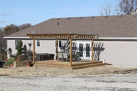 LISTING #420505 acres with 1700 sq ft true ranch home with everything! Open floor plan - living room, dining room & kitchen area. Tons of cabinets & tile floor in kitchen. Great room has vaulted ceilings and wood/gas burning fireplace. Master suite with jetted tub, shower and double sink. Main floor utility, 2 car attached garage and full walkout basement with bath stubbed - no basement finish. 16x18 deck with 900 sq ft stone courtyard. Detached 40x60 shop with full cement & elect. Custom built in 2003. $260,000