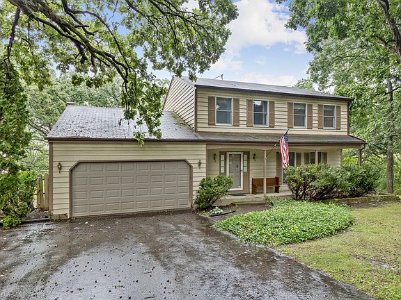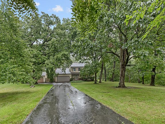 The hard to find family COUNTRY home on 1.6 ACRES is heavily WOODED and perfect for family enjoyment! Gleaming HARDWOOD floors compliment the family room and also the 4 SPACIOUS bedrooms on the 2nd floor. L shaped formal living/dining rooms, and family room which has FIREPLACE and bay window provide welcome to visitors. CERAMIC floored kitchen overlooking the family room allow all to join in preparations for the holidays. 2 1/2 baths with master bedroom has corner shower. Laundry area and REC room in basement complete room inventory. ATTACHED 2 car garage and DETACHED 2 car garage are desirable! Price reflects the need of cost and TLC to bring exterior up to par with the interior. MINUTES from full access to I90 and Riley Grade School district will please everyone. ACT today to have the opportunity to bring this home to its full potential! Estate sale being sold "AS IS".