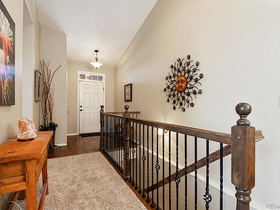 Welcome home to this stunning ranch situated on a premium lot in Buckley Ranch. Upgraded finishes, grand vaulted ceilings, custom window coverings and an open layout seamlessly tie together the main living spaces of this DR Horton home. Tons of natural light fill the spacious family room and the gas fireplace acts as a focal point in the room. Enjoy entertaining guests in the upgraded kitchen boasting granite counters, an oversized center island with bar seating, a stainless-steel appliance package, upgraded white cabinetry, custom backsplash and butler’s pantry. Step out the large glass slider to a large, extended covered patio overlooking a professionally landscaped yard with bonus side yard, mature trees, BBQ gas line and hot tub. Retreat to your main-floor primary suite, complete with ensuite 5-piece bath and walk-in closet. The professionally finished basement offers additional entertaining space with a large wet bar, huge den with coffered ceilings, two additional bedrooms, bathroom and large storage area. This home is situated on one of the largest lots in Buckley Ranch and is minutes from the neighborhood park, Reunion, shopping, dining and easy access to DIA. Don't miss out on this incredible opportunity to own a piece of paradise in one of the most sought-after communities in Commerce City.