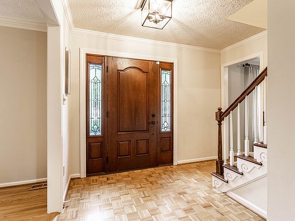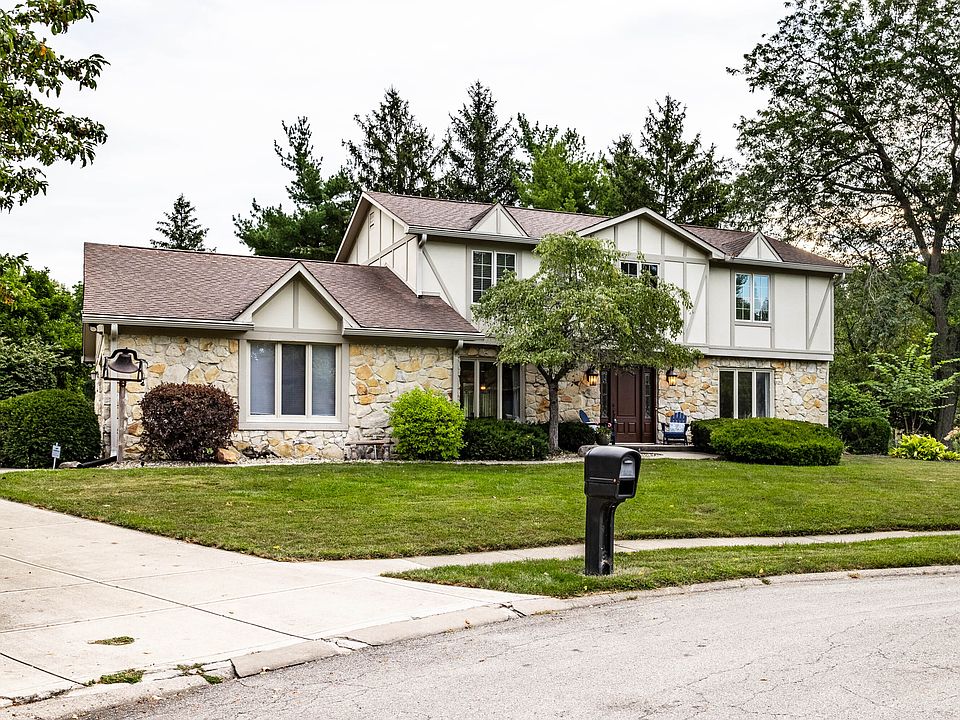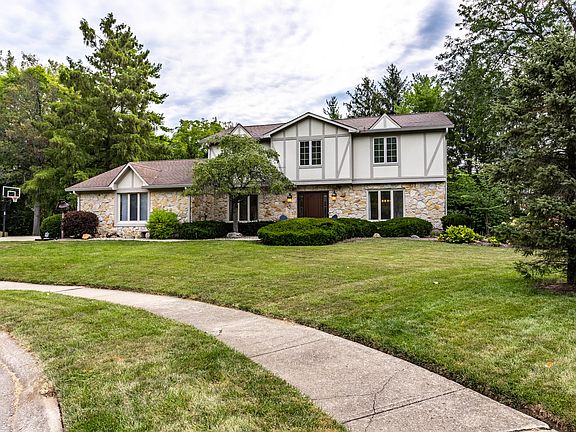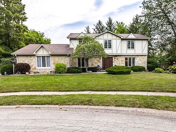 Welcome to this wonderful 4-bedroom, 3-bathroom home, nestled on 3/4 of an acre with beautiful trees, well-manicured yard, all located on a quiet cul-de-sac!!! This setting will leave you in AWE! This home has been lovingly maintained and is ready to welcome its next family. Step inside to find a main level that features a warm, inviting space, including large dining room, sitting room and a spacious great room with lovely built-ins and fireplace that's perfect for gathering. Just off the large family room, a fabulous, bright sunroom invites the outdoors in, offering a sunny space to relax and enjoy the views year-round. The heart of the home-the eat-in kitchen-features a center island and updated lighting, blending modern comfort with everyday charm. The large primary bedroom is a true retreat to unwind the day, accompanied by an ensuite bath with raised vanities, a fresh and stylish tile shower, and generous walk-in closets. With three additional bedrooms, there's room for everyone. Venture outside to discover a fabulous backyard that's perfect for both relaxation and adventure. Enjoy evenings by the firepit or explore the space to find a peaceful stream tucked away at the edge of the property-your own little slice of nature. The finished basement is all about fun, featuring a wet bar that opens to a handy workshop and bonus storage room. This unique home is filled with charm, comfort, and outdoor beauty-don't miss the chance to make it yours!