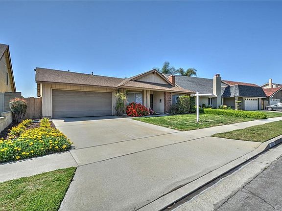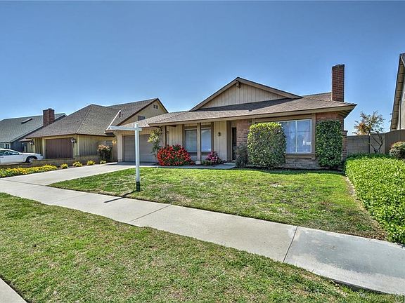 This charming four bedroom, two bath home is very warm and inviting. The house is newly painted and has brand new carpet. The large living room opens into the dining room with vaulted ceilings. The kitchen has light maple cabinets and nice neutral counter tops. The kitchen opens into the family room and views into the back yard. There is lots of natural light throughout the house. The large master bedroom has double door entry, one regular closet and one walk in closet, and two vanities with their own sinks. All the other bedrooms are located down the hall with guest bathroom. Linen closet and extra storage cabinets are located in the hallway leading to laundry room. There is direct access to the house from the garage. The back yard has beautiful landscaping and a nice sized pool with plenty of grass and patio area for entertaining. This home is perfect for someone to make their own....