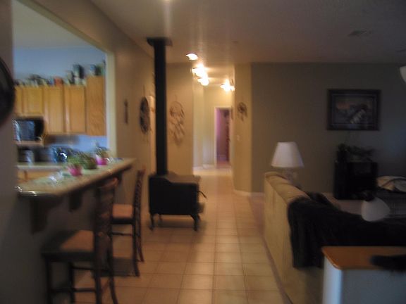 Secluded yet about a 1/2 mile from town. This split floor plan is 2x6, R-30 with 9 foot ceilings lots of granite counter tops, with cook island and vented hood. Trash compacter oak cabinets with pull-out drawers. Double oven large pantry. Pre wired whole house ceiling speakers. Lots of ceramic tile floors. Whole house water softener with reverse osmosis. Tankless water heater. Finished off 702 square foot patio which leads to green grass. Gorgeous master bath. Jetted tub, two shower heads. Bring the 4x4, this 702 square foot bonus garage opens 8 feet high.