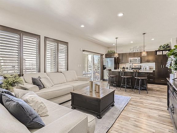 Enjoy the summer in style - - sunny, updated home in Reunion with all the great neighborhood amenities. Open-concept in living areas with gorgeous kitchen featuring oversized island, breakfast bar, and upgraded cabinets. New LVP flooring throughout entire main floor - gorgeous and durable. Newly remodeled powder room. Upstairs offers second living area with generous loft. Large Primary Suite with upgraded vanity. Also upstairs: 2 nicely sized bedrooms, full bath, and laundry center. Unfinished basement offers opportunity to add more living and space and value to the home. Fenced backyard includes covered patio and additional patio with plenty of grilling space, perimeter gardening options and lovely mountain views. Included are all appliances, smart home features, and shutters on all windows. Reunion is the major leagues of living - plenty of amenities to keep you entertained with your new neighbors, 2 swimming pools (one just a short walk away) and playgrounds, fitness center and basketball courts, new K-6 school, easiest access to multiple commuting options, and a short 10-mile drive to DIA! Buyer's financing failed, no fault of home or seller.