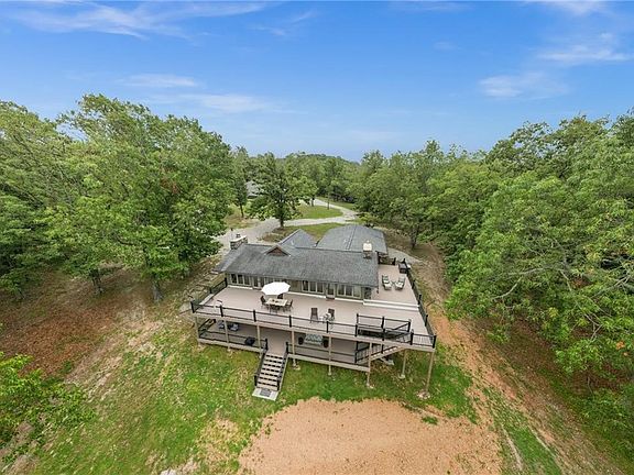 Lakeview home with boat slip and dedicated workshop! Walk through your front entry and enjoy panoramic, breathtaking views of the lake or step outside on to the 2000 sq ft composite deck, spanning the length of the home. Home has experienced a well-executed, tasteful remodel from top to bottom. Main level boasts herringbone porcelain floor, custom kitchen cabinetry, beautiful granite countertops and walk-in pantry. Perfect for relaxing or entertaining loved ones. Custom staircase down to the lower level showcases the bedrooms, each with a lake view and walkout to the covered deck. Fully renovated guest bathroom and washroom are down the hall. Coveted primary suite has an exquisite bathroom with sit down vanity and roomy walk-in shower. Spacious closet off of bath along with primary office complete the lower level. Dedicated easement down to the boat dock includes one 10x20 slip. Above the home sits the 60x40 insulated, red iron shop. New roof and Pella windows installed Sept 2024!