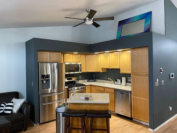 This Condo is rested in the beautiful neighborhood of Independence Park. It is walking distance to great southside grocery stores, restaurants, bars, trails, and more. Only a quick 10 minute drive to beautiful downtown Anchorage. Public transportation is also very close. The neighborhood is extremely quiet and very friendly. It is part of an HOA which maintains the driveway and entryway in the winter as well as the lawn in the summer keeping the exterior always looking pristine. Both of the master bedrooms have King Beds and and mattress' with full walk in closet's. This unit is 100% turn key, ready to be lived in. It includes a Flat Screen Smart TV in the living room as well as in both the bedrooms. There is one bedroom on each level of the house with downstairs room having a gated deck with gas fireplace. The kitchen is equipped with silverware, plates, cups, pots and pans, coffee pot, and much more! All thats needed is your personal belongings. Two full sized vehicles fit into the garage with no problem. Pets are more than welcome! Owners live near by so if there is ever any issue at all it will be addressed immediately! This unit is fully furnished, turn key, ready to be lived in. Owner pays all utilities (With a Max) including Wifi. The only thing this unit needs is your personal belongings!