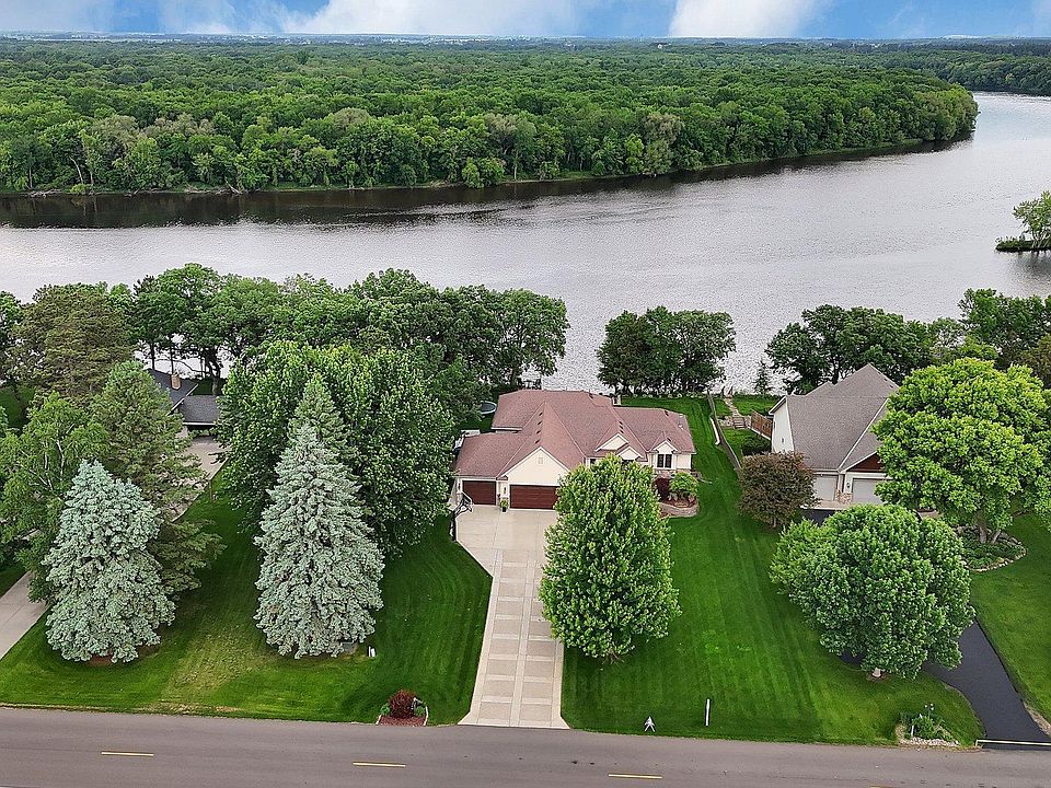 Elevate the way you live and play in this custom crafted 4 level home designed to enjoy river views from every vantage point. Originally built and later remodeled by Infinity Homes, find the finishes and workmanship you would expect from one of our areas premier contractors. Greeting your approach, a sizable concrete drive and oversized fully finished insulated and heated garage. Front door entry gives you immediate view to the back of the home and the river scape! Enjoy acacia hardwood floors that merge the main floor living spaces vaulted with rustic beam accents- the kitchen living and dining converge to lend a magazine worthy presentation. Stone crested chef's station with hooded vent, corner sink with a view, stainless appliance package and large island platforms all of your culinary and entertaining adventures. Main floor fireplace creates a great focal point and will warm you up on cooler days. Main floor dining leads easily to the deck you have been dreaming of, with views of the river and 198 acre Mississippi River park across the river making for permanent natural views. Development also abuts over 600 acres of Bend in the River Park Land for hiking and recreation. Main level also hosts a 1/2 bath and a designated mudroom with locker systems. Upper level offers the primary owners suite with fireplace, private deck, room size walk in closet and 4 fixture bathroom with separate tub and shower. Designed with the way you live in mind, access to the upper level laundry is also accessible from both hall or the master bathroom. Another bedroom and addtional bathroom found on this level. 3rd level will find you walking out to yard grade and beautiful hardscape patio. Entertainment level is set up with full stone fireplace, bar, refreshment counter and a double refrigerator. A full bath and bedroom that current seller uses as an office are also found on this level. 4 level will not disappoint, designated gym area that could also serve nicely as a toy area or hobby room. Two beautiful bedrooms with walking custom closets. The river side bedroom is an excellent guest suite with a room in vanity system. Presentation of the home is grand, but the passion for life shows up in the outdoor space created here. An enclosed brick entertainment area with bar and firepit overlooks the river and lends access to a superior aluminum docking system. Please see professional video and photographs for additional description and then schedule a private showing to fully appreciate this showstopper of a property. Summer is coming- spend it here!