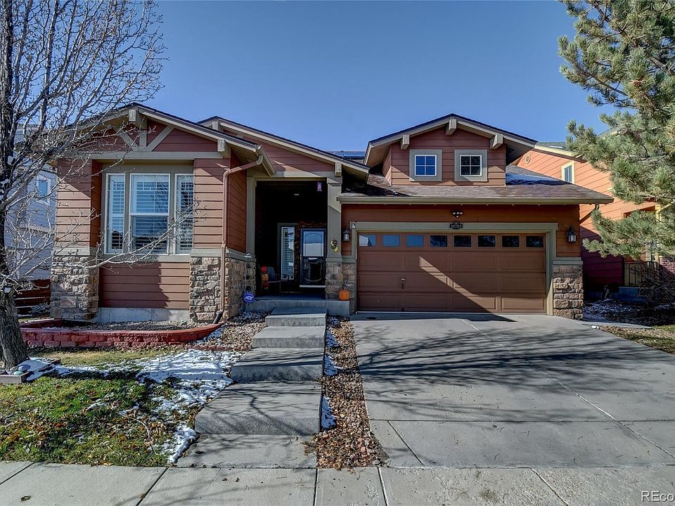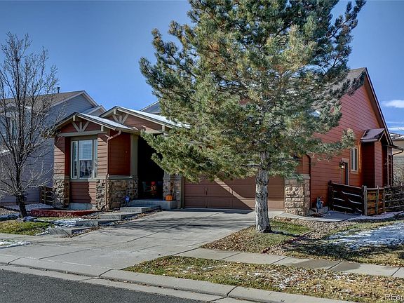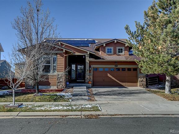 Welcome Home! This stunning ranch has all the attention to detail from beautiful crown molding to plantation shutters. Open floor plan is great for entertaining. Kitchen has custom cabinets with quartz countertops and a large island, There is also a separate dining area in the kitchen. All appliances in the kitchen are included. Relax in front of the gas log fireplace in the family room. Master suite with 2 closets and a luxurious bath with soaking tub and custom shower. Work from home in the private office with glass french doors. The finished basement adds a great 2nd level which includes a 3rd bedroom with 3/4 bath, game area and a homework nook. Huge storage area that is partially finished could easily split into storage and into an extra bedroom Relax on the covered back deck in the fenced back yard. This home also includes a solar panel system it is very efficient and can almost eliminate your monthly electric bill to save you money while helping the environment. 10 minutes to Denver International Airport. Hoa includes a wonderful rec center with fitness club and kids programs, 2 pools and walking trails. Enjoy the Reunion coffee house, sit outside on the wrap around deck or rent the meeting space. Fantastic home! Shows beautifully. A one year home warranty is also included.