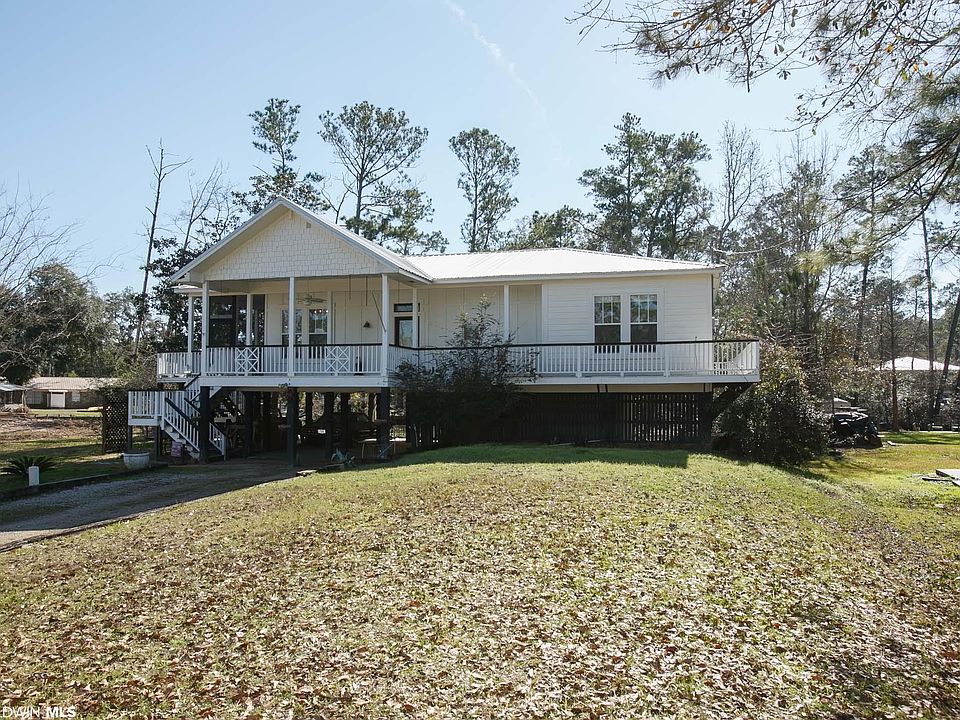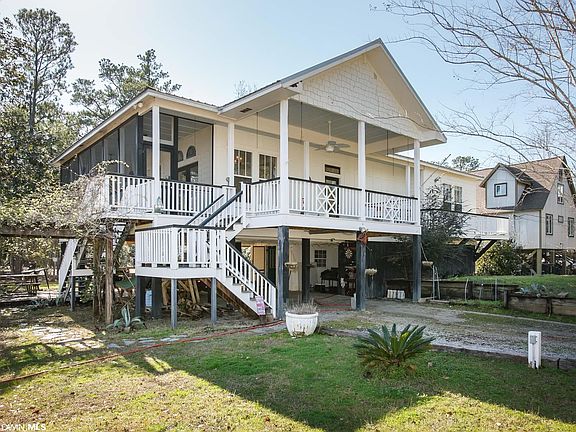 This waterfront, farmhouse-style, beach house sits on almost a half-acre lot. With four bedrooms and two and a half baths. The private boat slip gives you access to Weeks Bay, Mobile Bay, and the Gulf by water. It rests in a Quiet close-knit neighborhood with No HOA. There are two storerooms underneath. A Satsuma tree, Blueberry Bushes, and Muscadine vines are on the property along with three raised bed gardens for whatever you like to grow. There’s a wraparound Porch with a screened-in portion that provides spectacular views for coffee in the morning, or cocktails in the evening. You are close enough to shopping and restaurants while enjoying quiet country living. With a functional fireplace for the cool winter month, this is the quiet retreat you have been looking for.