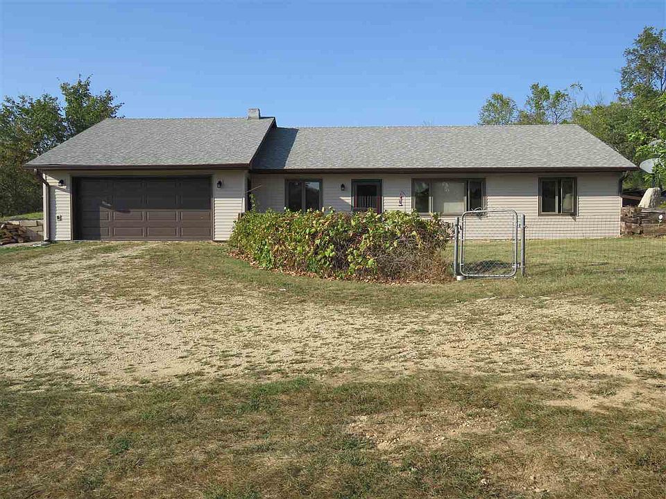 SPECTACULAR VIEWS from this property... built in a hillside with southern exposure. Sugar River Alder Forest Preserve buts up behind property and Colored Sands Forest Preserve is across the street. Home is heated with wood burning stove, (masonry chimney) with electric baseboard heat for back up. Dining room wall is native limestone excavated from property. Oak cabinets, Corian countertops and skylight in kitchen. Many interior updates in 2010. 50x30 insulated steel outbuilding with concrete floor, 14 ft tall walls, 12x12 overhead door. 240 volt single phase to outbuilding, with 3 phase converter for for high power tool. New vinyl siding in 2017, new roof in 2012. Zoned Agricultural for livestock. Outdoor shooting range on property. This is truly a country property, very few neighbors. L shaped parcel, boundary lines are marked. Plat of parcel on site. Sellers are moving out of state, many outside items have been moved, and other items and vehicles are in process of being moved.