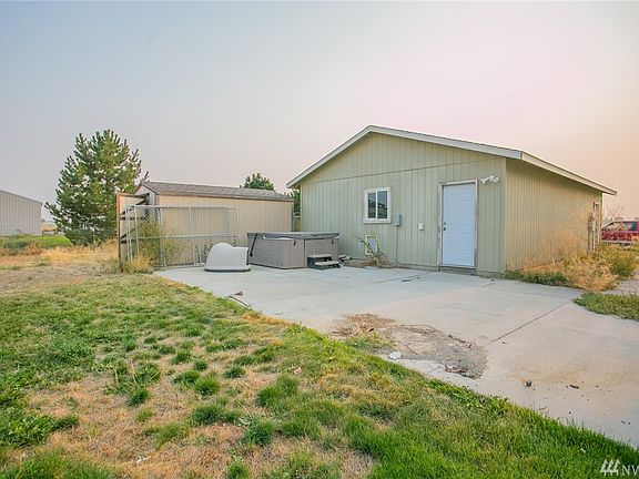 Irrigated Horse Property! Want to have your own little mini farm? Here it is! 5 acres with irrigation, wheel lines & hand lines that borders a wildlife area. Property is fenced and features 2 loafing sheds for horses, chicken coops, port-a-huts that serve as animal shelters and a 1392 sq. ft. barn. Property also has a 24x36 garage, hot tub & trampoline. This 1960 sq. ft. 3 bed, 2 bath manufactured home is second moved.