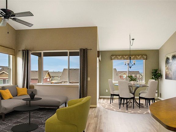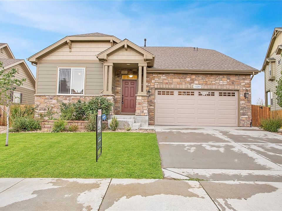 Gorgeous updates to this popular ranch model in Buckley Ranch. With brand new plank flooring and carpet throughout the main floor, this home feels like new. Newer kitchen appliances are in the modern black stainless steal finish giving the kitchen an upgraded, stylish look. This DR Horton Prairie/Pike floor plan offers 2 main floor bedrooms and additional flex space that can be used as formal dining, an office or converted to another main floor bedroom. A large open great room/family/dining and kitchen area is perfect for entertaining and opens onto an extra large deck for outdoor living. Mountain views from the deck, master bedroom and main living area. Enormous walkout basement offers tons of square footage to build out more bedrooms and tons of living space with covered patio. Main floor laundry, large mudroom and additional office/workspace off the garage. Fresh landscaping with new sod everywhere and river rock added in many areas have the yard looking like new as well.