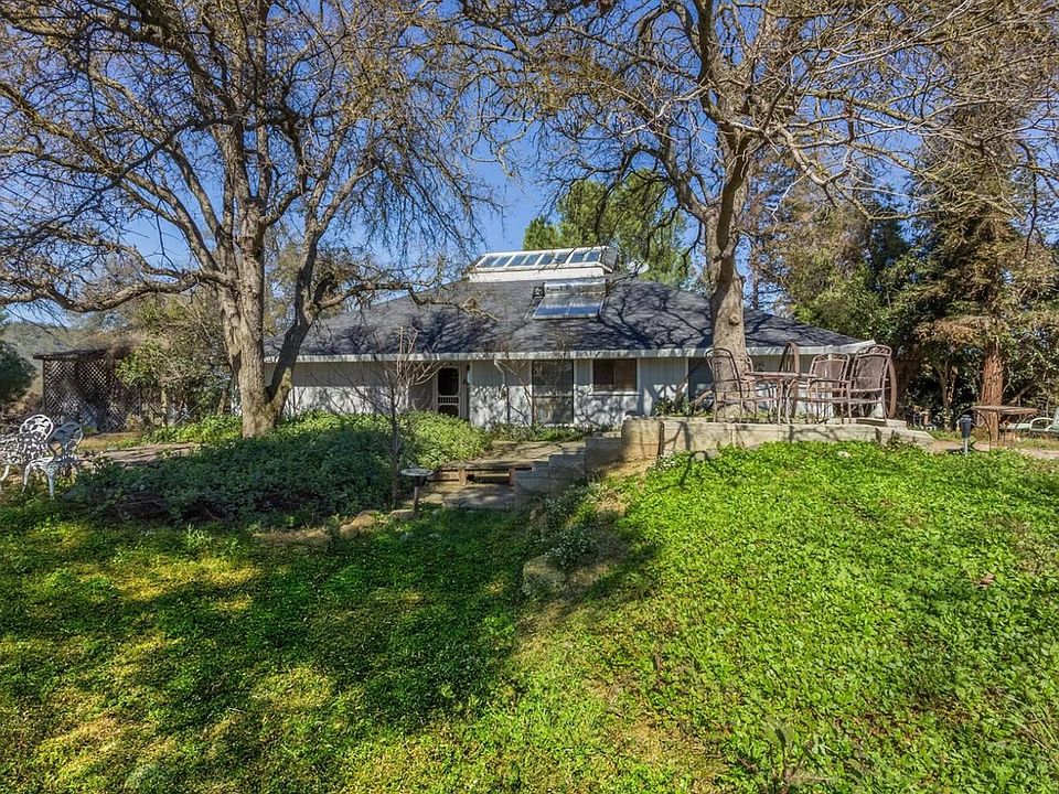 Great horse set up on 10acres+ or - with 5 bedroom 3 bath. 2300 sq.ft home and 5 car garage. This unique home has an atrium that adds so much to the foothill ranch feeling and has views of the hills that add even more. The 5 car garage has a tac/storage room adjoining and there is a horse barn and storage area for hay and feed plus other shed. Property is gated and fenced and cross fenced.
