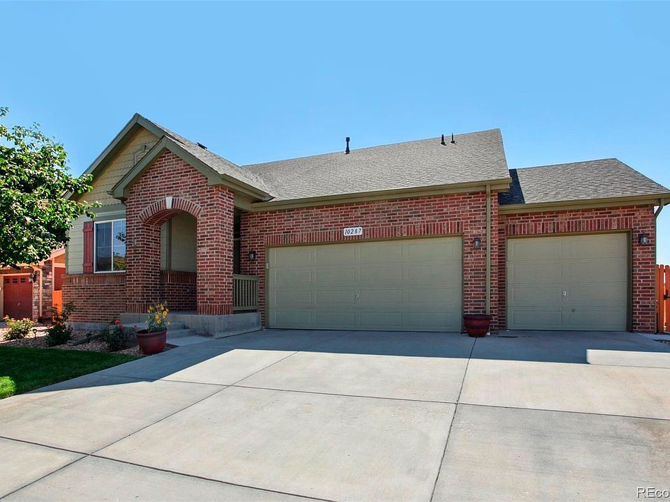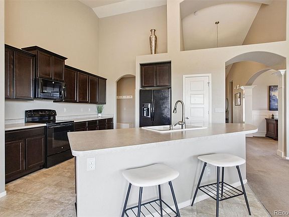 Enjoy absolutely stunning mountain, meadow, and stream views as you watch sunsets from your kitchen, great room, primary bedroom, and porch / patio. Backing to open space and walking trails, this property offers an exceedingly rare, and unobstructed view of the front range. This 3 bed, 4 bathroom stunner in Buckley Ranch is the perfect spot for accessing DIA, shopping, and the lightrail, while a fantastic place to enjoy all the metro area has to offer. The open kitchen boasts gorgeous tall ceilings, and expands into a great room for entertaining or quiet nights at home. The primary bedroom has a 5 piece en suite private bathroom, while the second main level bathroom has its own private en suite bathroom! Walk out basement has a second kitchenette and laundry room, as well as the ability to be locked off for flexibility to have a STR, air-bnb, or mother in law suite potential. A 3 car garage offers huge amounts of storage for all the toys and ample parking.The pride of ownership and maintenance shine through with this one. Notice the extras and numerous upgrades; like a Halo-5 water purification system, smart thermostats, smart garage door openers, a recent exterior paint-job, and so much more. Mountain views with a home that truly has it all are hard to find!