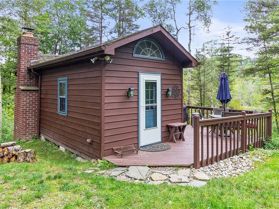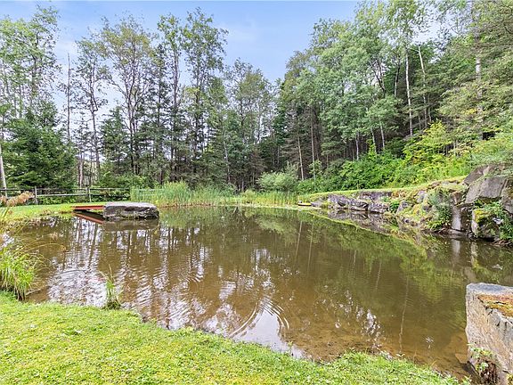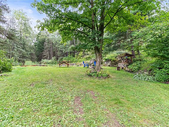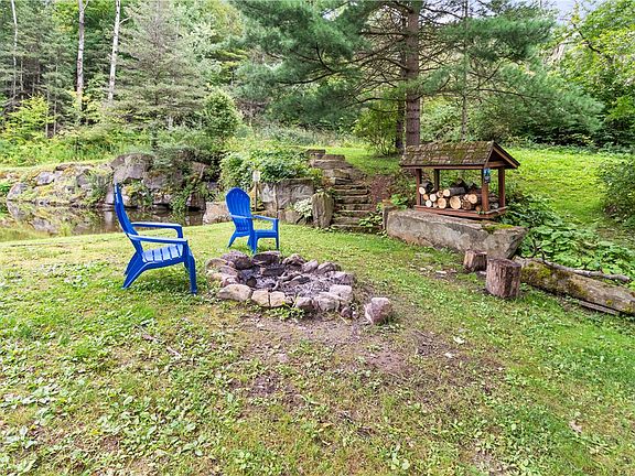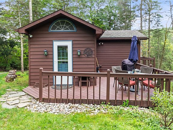 Secluded cabin on professionally hardscaped 5 acre property. Sit on the bridge or boulder overlooking the waterfall spilling over to fill the lower pond and creek beyond. Swim with the koi & painted turtle. Relax to the serenade of the bullfrogs. Relax on the hill in a hammock, or next to the pond around a campfire. The lights surrounding the pond allow you to enjoy the pond well into the evening. Grill & eat on the deck overlooking the surrounding hillside. Explore the wooded hillside along the trails. An array of animals call this Wildlife Habitat home. Cozy up in the living room around the wood-burning fireplace. Enjoy a morning coffee on the private balcony off the bedroom. Gather on the deck with friends to enjoy your favorite Finger Lakes wine or a BBQ. Buy this established airbnb furnished (negotiable), or bring your own touches to the updated cabin. Purchase the new Kubota tractor to maintain this amazing property. Too many improvements and features to list, see the attachment for more details. All current reservations to be honored. Do not enter the property without a licensed agent.