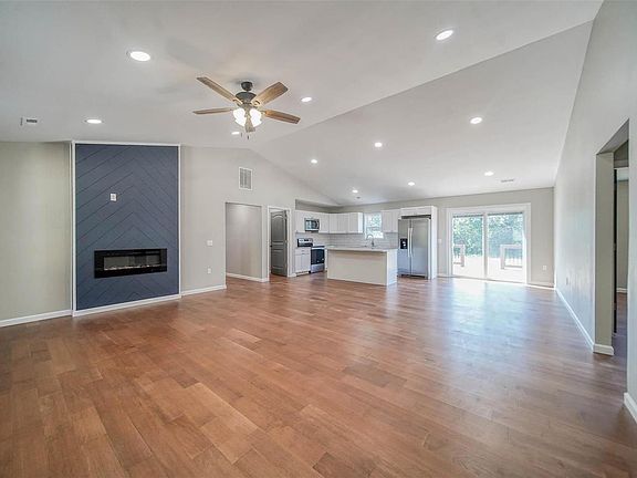 Welcome home to this stunning new construction just minutes from Rolla! This 3-bedroom, 2-bathroom beauty offers an inviting open-concept design with engineered hardwood floors throughout the home. The kitchen is a chef's dream, featuring a spacious center island with a breakfast bar, a large walk-in pantry, subway tile backsplash, and sleek stainless steel appliances. The living room is a cozy retreat with an elegant electric fireplace. Sliding glass doors in the dining area lead to the deck overlooking the backyard. The primary suite is a true sanctuary, boasting a generous walk-in closet and a luxurious en-suite bathroom with a custom tile shower and double vanity. The spacious 2nd and 3rd bedrooms both offer large closets. A full guest bathroom and laundry/mud room complete the home's layout. The attached 2-car garage provides additional storage space. This picturesque 3.31 acre parcel m/l is dotted with mature pine trees. Don't miss the chance to make this exquisite home yours!