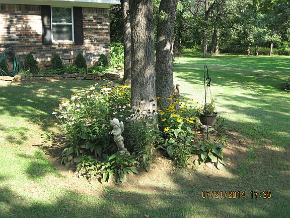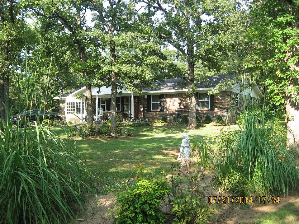 VERY Nice Home. Front & back covered porches, beautiful landscaping & flower beds, gold fish pond. Painted lofted storage building. Open LR & DR & Kit.. Carpet in LR, Wood flooring in kitchen & DR. Den with own heating which is propane & built in bookcase, large bay window. Kitchen has great lighting. Walk-in shower in MBR.