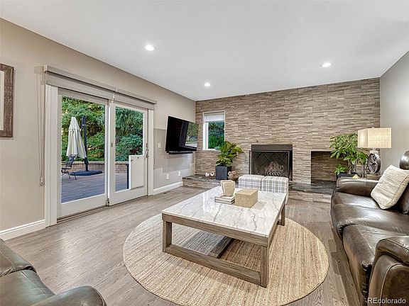 Beautiful 5-bedroom, 4-bathroom home offering over 2,900 square feet above grade, plus ~ 800 sq ft in a beautifully finished basement! This residence has been updated w/ quality finishes & smart improvements, making it move-in ready & perfect for modern living & entertaining. The quality white kitchen features granite counters, a center island, soft-close drawers & cabinets, double ovens, & a built-in beer fridge. Open to the family room which includes custom stacked stone surrounding a wood-burning fireplace w/ a granite hearth. Sliding doors from the family room and kitchen truly allow for seamless indoor / outdoor living! Step outside to your private backyard patio retreat w/ over 1300 sq ft of custom Belgard pavers, gas fire pit, built-in seat walls w/ lighting, overhead string lights & gas line for BBQ! An entertainer’s dream! A first floor office / bedroom make this house easy to live & work in. A redesigned mudroom off the garage w/ built-in cabinets, seating & utility sink. Upstairs, the reconfigured luxurious primary suite boasts a new gas fireplace, a spa-like bathroom retreat complete w/a beautiful walk-in shower, heated floors, dual marble topped vanities, heated toilet, Elfa closet system, & ceiling speaker. Enjoy the convenience of an upstairs laundry w/ a new full size washer/dryer stack. The finished basement, remodeled in 2023, offers LVP flooring, fresh paint, & a stylish 3/4 bathroom. Other recent upgrades include James Hardie siding, new carpet, interior paint, new entryway & guest bath tile, new windows, attic storage, heated toilets, & hot water recirculating pump add to the comfort & easy living. Energy-efficient improvements include a Decra XD stone-coated steel roof, EV 220V charger, & heated garage. Sundance Hills Pool & Tennis Community! Just minutes to Cherry Creek Reservoir. Don't miss this opportunity to own a turn-key home w/ style, comfort, smart updates, timeless design & exceptional outdoor living all in a fantastic neighborhood.