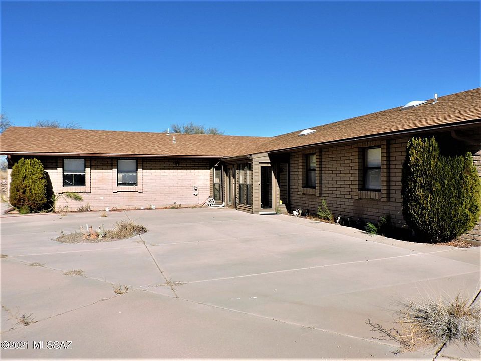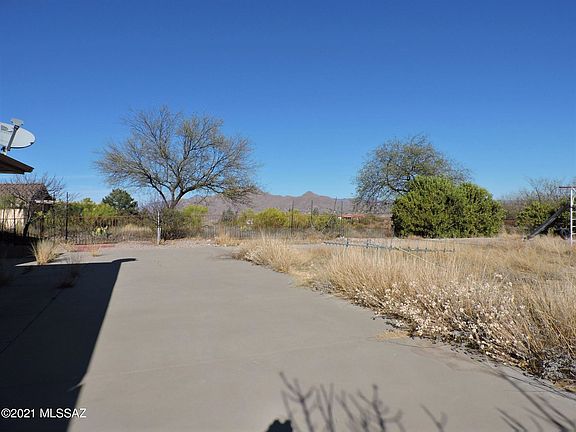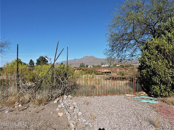 Plenty of upside on this 2100 SF home in desirable neighborhood in Rio Rico, (large home at the end of the street recently sold for $525,000). Located on a cul-de-sac w/views of San Cayetano, the .74 acre parcel has concrete driveway, large parking area w/room to park an RV & boat, fenced w/gated entry, rear yard with room for a pool & has a storage shed. The Arizona room spans the width of the back of the house and is not included in the SF of the house. The interior has extra large secondary bedrooms, oak flooring throughout, formal dining room, large laundry room & foyer. This home is ready for a new owner to update & remodel. Roof was recently replaced & there is a one year contract w/Terminix. This is a probate sale and is being offered as is & no seller concessions or repairs.