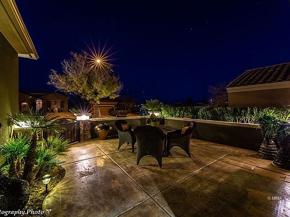 One of a Kind Laurel Model in Sun City Mesquite 55+ Community - Meticulously Maintained and only used as a winter getaway, this home looks like New! Enter through the Custom Courtyard with stone accents and built in lighting - catch the sunrise mountain views. 2 Large Bedrooms and a Den/Office. Open concept floorplan with Solar Tubes for extra light. Surround Sound with speakers also in the master and in the back patio. Pristine Tile flooring with sealed grout throughout the home, beautiful granite counters, even pullout drawers in the kitchen cabinets. Canned lighting with touch dimmers. Walk in tile shower and gorgeous barn door to the big master closet. Garage has epoxied floor and lots of cabinets. But wait till you see the back yard - step into an Oasis of your own. Watch out for the giraffe as you walk through the plush landscape. Stamped concrete back patio with a fire pit, sunscreen, TV. The waterfall cascades into the pond, large putting green. Several sitting areas. And it all lights up at night on a timer, including the front courtyard. Home Warranty for the Buyer. High End Furniture Package available separately. You could just step right into this dream!