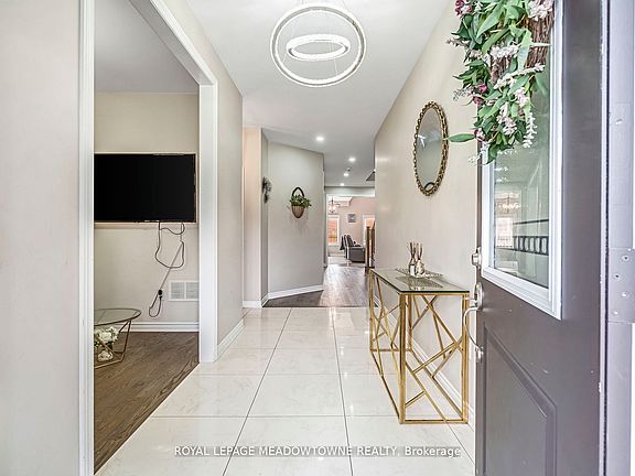 Welcome to this bright and spacious 3,097 sqft 4 bedroom gem. Step inside to a bright, airy foyer with large porcelain tiles that continue through the kitchen and laundry. Separate family, living and dining rooms offer hardwood floors and easy flow for entertaining. The open to above living room showcases a floor to ceiling brick fireplace framed by a built in wall unit with pot lights. The gourmet kitchen presents a large island with wine fridge, quartz counters, a tile backsplash, stainless steel appliances and a gas stove, plus a walkout to the backyard. A beautiful main floor office with French doors can be used as a bedroom. Upstairs you will find four generous bedrooms with ensuite access, including a primary retreat with two walk in closets and a five piece ensuite. The full basement includes a separate walk up entrance for flexible future use. Brick and stone exterior. Close to schools, parks, shopping and commuter routes.