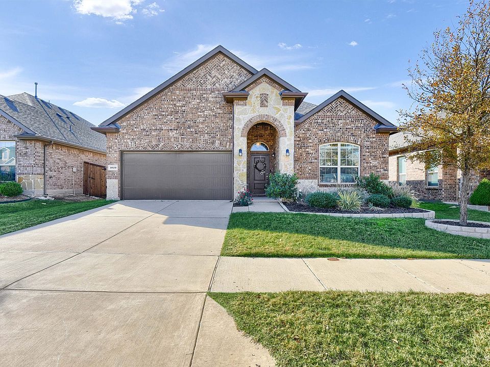 Nestled within Celina's prestigious Bluewood community, this residence presents an unmatched lifestyle amid a treasure trove of community luxuries. From the lauded Celina ISD to an array of amenities such as trails, an inviting amenity center, shimmering pool, serene fishing ponds, parks, and playful playgrounds, every day here promises an adventure. Boasting a den and a dedicated home office nook, it's tailored for modern living. The living room features a cozy gas fireplace for relaxation while the kitchen dazzles with sleek white shaker style cabinets, quartz countertops, and an impressive gas stove top with a wood hood. Architectural elegance shines throughout with tray ceilings and inviting open living and dining space leading to an extended patio, perfect for entertainment and leisure. Outdoors, enjoy the stunning large wood plank stamped patio, creating a peaceful retreat for gatherings and relaxation. Don't miss this opportunity to create lifelong memories in comfort and style.