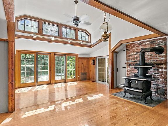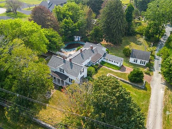 Welcome home to this great farmhouse style property in lovely North Kingstown. At over 3100sqft of living space this home has enough room to entertain everyone inside and outside with large rooms and your private lush yard with inground pool. Set on over 1.5ac with a 2 car detached garage including 2 outbuildings comprised of a barn and a freestanding shop that offer so many possibilities. The home features 3 bedrooms plus room to expand. There are 2 large living rooms with high ceilings, a bright home office with built-ins and a wood burning stove. Each living room has its own warm brick fireplace with plenty of windows for natural light. The dining room has another wood burning stove just off of the open kitchen with high ceilings, transom windows and glass doors out to your pool area. Bring your creativity, there is great opportunity for thoughtful design and sweat equity. Call today and make make this wonderful home your own. Can be sold with additional adjacent 2.7 acre lot 127 Weavers Rd MLS #1344214 call today! Offers due 5pm Thurs 9/21.