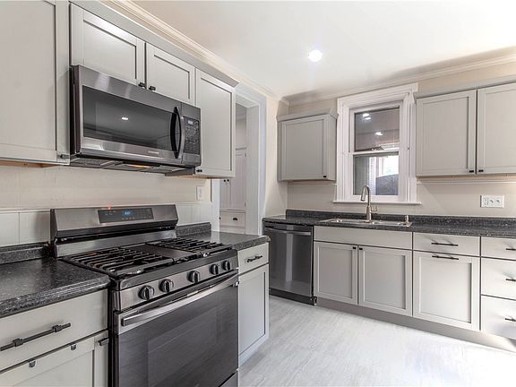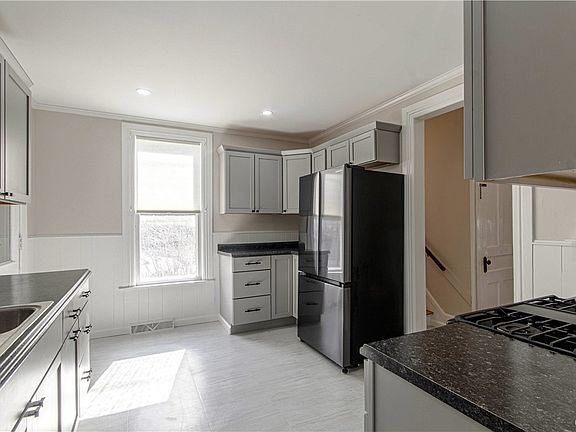 This is a beautiful 2 story home in the City of Watertown. Gorgeous, refinished hardwood floors in much of the house. The natural woodwork in this home is breathtaking along with the tray ceilings. The rooms throughout are quite spacious. The 1st floor is laid out quite nicely. There's a formal dining room that can hold a large table. The living room is bright with natural light. The bonus room has fantastic space to create a 2nd living room or an office. The 2nd floor bedrooms are fantastic size with decent closet space. The 2nd floor full bath and the 1st floor half bath have been tastefully redone. The kitchen has all new cabinets and appliances, beautiful new floors. The 1st floor laundry room is off the kitchen with room for a pantry. The mud room enters into the kitchen with plenty of space for shoes or storage. The garage is detached from the home. It has a wonderful lean-to off the side, making it convenient for a sitting area or BBQ's. There's a walk-up attic for storage. The covered front porch adds great character to this corner lot home. The owners have taken great care of this home and have done many updates throughout. Short drive to Ft. Drum & local amenities.