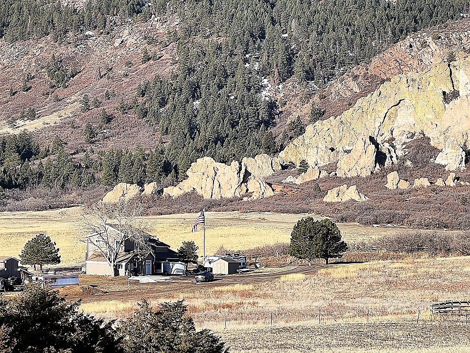 Looking for rural living w/ un-paralleled views close to town...your search is over! Over 5 acres of flat useable property w/ absolutely fantastic views of Bee Rock, foothills, & Pine Cliff Ranch! The selling features of this home seem endless * 4 beds PLUS study PLUS loft(s)...ton of flexibility * finished basement w/ mother-in-law suite including kitchenette, second laundry hook-up & its own private access * 4 car attached garage w/ heat and 220V service * 1080 sq ft barn (easily converted back to include 6 stalls for horses or?) / 330 sq ft workshop/shed (w/ 50/30 amp RV service) / 2 additional storage sheds * tranquil water feature AND propane fire pit * 3+ decks (largest of which is 27 X 16) * Primary bedroom has its own private deck! built-in / walk-in safe * Majority of main floor has recently refinished hardwood flooring * Spacious mud room directly off of garage (second laundry in basement) * 4 bathrooms (F,F,F,T) * 2 fireplaces * This home was built for entertaining, outdoor living, and the rural lifestyle...bring your toys! Finished basement includes great room w fireplace, bedroom, kitchenette/laundry & plumbed for wet bar. Check out the generous dimensions of the secondary bedrooms. Upstairs loft(s) allow for secondary study, if needed. 10 minutes to Pike National Forest, 15 minutes to Rampart Range riding trails, 25 minutes to South Platte River (fishing)! Least expensive home on 5+ acre currently available in Sedalia....better run!