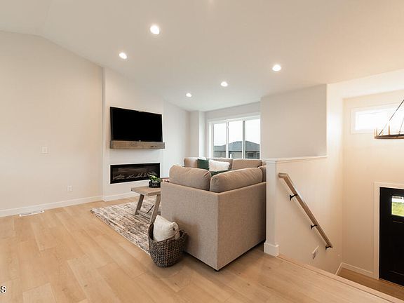 The kitchen opens up to the dining room and spacious living room which showcases the beautiful electric fireplace with a custom-stained mantel.