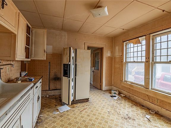 Do you like to tackle projects? From the covered front porch, you step into the large living room that seamlessly flows into the dining room and kitchen. There are two back rooms that are an open slate waiting for your vision of opportunities. Upstairs are two nice sized bedrooms with generous closet space and a full bath. You'll find plenty of storage availability in the basement.