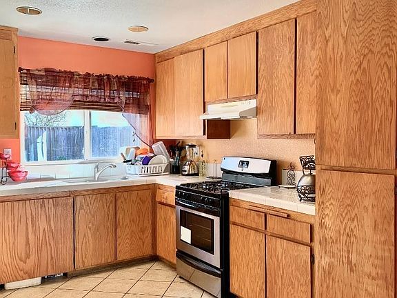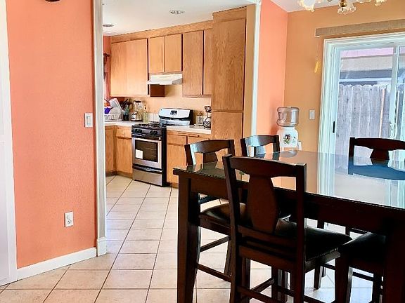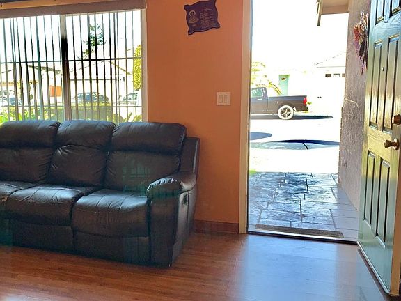 BEAUTIFUL HOME! 4 bedrooms and 2 full bathrooms. Nice floor plan with high ceilings and plenty of natural light in the living room/dining room, dual pane windows throughout, fireplace, tile and laminate flooring. Cemented walkways on both sides of the home and back yard, perfect for entertaining, storage unit included. Two car garage with cabinets for extra storage. Tile roof, new water heater and double sink in master bathroom. Located near shopping and schools.