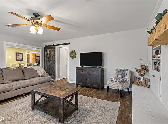 This adorable home is ready for new owners! With tons of living space and lots of updates, you don't want to miss this one! From the moment you enter the front door, this house feels like a home! Unique touches include a custom made barn door that provides character and functionality as it transitions from the living room to the hallway, a beautiful white brick wall that really showcases the gas log fireplace, wood look vinyl plank flooring throughout the bedrooms and living spaces (no carpet!), and new interior paint in grey and white tones. Other custom touches include beautifully stained butcher block counter tops in 2 of the 3 bathrooms with the third bathroom offering a large custom tiled shower and floor. The kitchen is bright and airy and includes stainless steel appliances with a 6 burner gas stove top which a chef's dream. The backyard is fabulous with a custom made pergola and fire pit right out the back door which is perfect for entertaining! Come see this one TODAY!