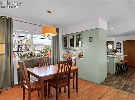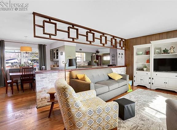 Spectacular ranch style home with picture perfect views of Pikes Peak. Beautiful wood floors greet you as you enter this well maintained property. Big updated kitchen with new appliances except the oven. Good sized master plus two more bedrooms on the main level. Two main level living areas plus a full bath and a 3/4 bath. Two more big bedrooms downstairs one is currently used as a theater room. Downstairs also has a 3/4 bath as well. Lots of storage as well as a exercise/flex room. Big back patio which is fenced and offers an amazing Mountain View.