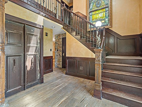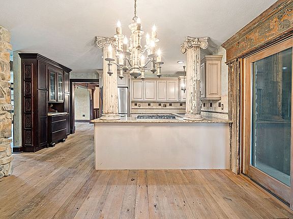 Welcome to this Gorgeous Tuscan Villa style home with too many updates to list! You will marvel at the attention to detail, such as the 19th century beams in and around the stone clad of the house. A unique collection of hardwood floors leads you into the fully customized kitchen complete with imported columns, followed by the family room which includes a rare tumbled rough marble imported from Europe in addition to ironwork from the 18th century. Once upstairs, you can appreciate the 19th century stain glass and columns. The ceilings on the second floor are all 19th century school and church slat wood. The spectacular master BR was designed to match the aesthetics of the palace of Versailles with custom paneling. Two additional BRs on the second floor, each with similar attention to detail! The basement was designed to resemble a speakeasy that includes a replica bar resembling an old English small-town bar. The wine room is completed with imported 18th century Argentinian doors.