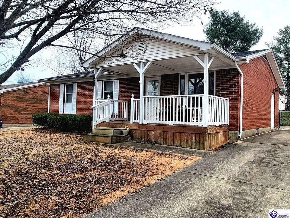 Adorable ranch with many updates and features. The kitchen is charmingly styled with good cabinet/counter space, backsplash and window overlooking the fully fenced in back yard with additional concrete pad and oversized deck with built in seating. The bathroom boasts a tub that is tiled to the ceiling, newer toilet, custom paneled wall, updated lighting, and newer vanity. The covered front porch overlooks the side walked subdivision with plenty of space for seating. The home is conveniently located on the south end of Elizabethtown close to I-65, parkway and bypass access. Don't hesitate, schedule your tour today.