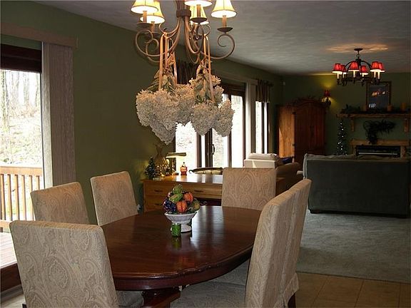 Privacy, comfort, and nature waits for you in this custom built, meticulously maintained home on cul de sac just minutes from the PA Turnpike, Seven Springs and Hidden Valley Resorts. Open floor plan, large eat in kitchen with InSinkErator, beautiful wood cabinets, and tile floor. Great Room just off the kitchen with large windows and Patio doors bringing in the natural light. Deck and patio just off the kitchen and great room for entertaining. Formal living room with vaulted ceilings, Dining room used as TV room, third bedroom and full bathroom along with mud room and several great closets complete the first floor. Master and second bedroom are on the upper level each with its own full bath room. Full basement with high ceilings waiting for your finishing plans, concrete foundation sealed with TUFF-N-DRI during construction. Double pane Anderson windows and doors, and custom blinds help to enjoy the views of the mountains, nature and maintain your privacy.