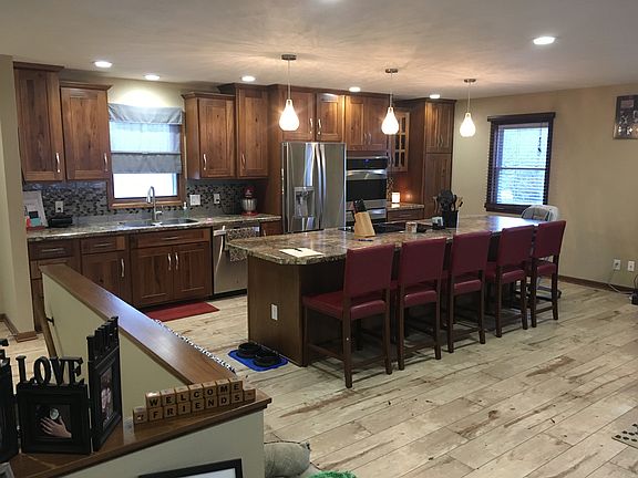 Complete open concept upstairs. Two bedrooms and two baths on the main floor. One bedroom is the master with a master bath. Custom cabinets in kitchen and stainless steel appliances.